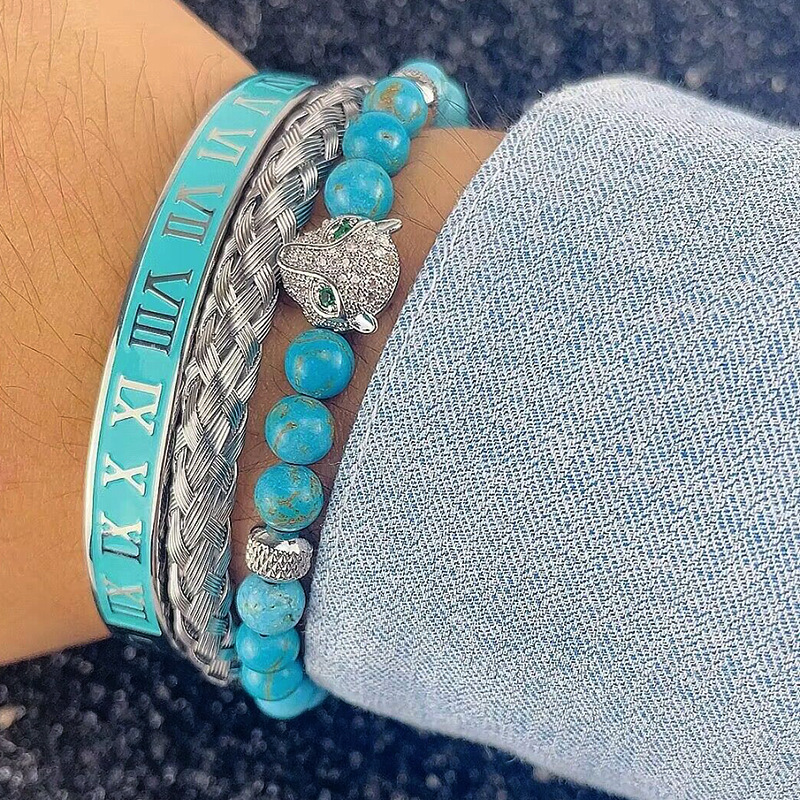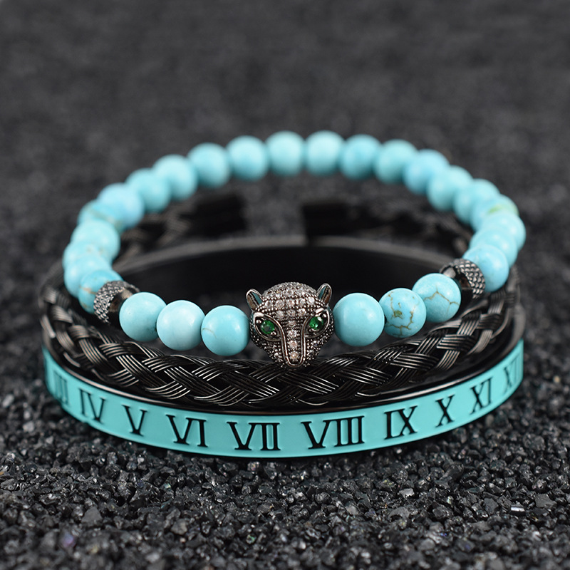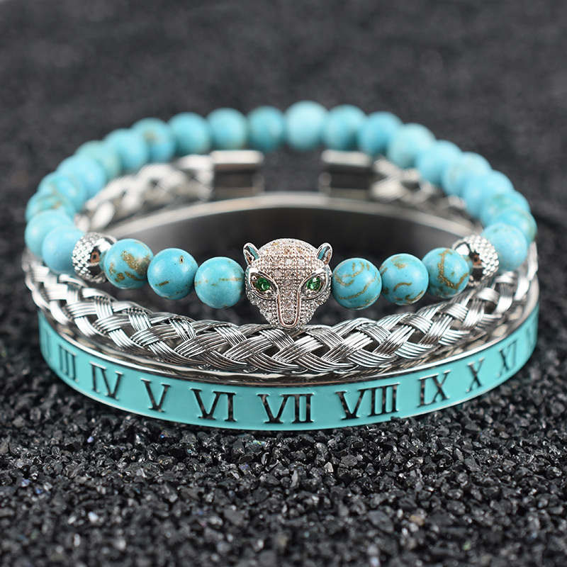 Natural Green Pine Leopard Head Roman Twist Weave Men's Bracelet